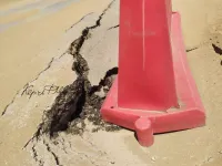 На Аршинцевской косе порвало проезжую часть. Провал уже глубокий и расходится дальше, - передает Керчь.ФМ.