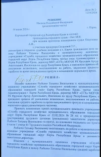 Керченский городской суд восстановил на работе незаконно уволенную замдиректора по правовым вопросам МКУ «СГХ», а в прошлом офицера-следователя, с полной компенсацией недополученной заработной платы и возмещением морального ущерба. Все эти грехи руководителей будут компенсированы по закону из государственного бюджета, то есть из наших с вами налогов. Руководит МКУ желающий стать депутатом с девизом предвыборного ролика «борьба с коррупцией» Артур Фрундин. Все увольнения замдиректора проходили под руководством главы администрации Брусакова. Администрация Керчи является учредителем МКУ «СГХ», и так как это казенное учреждение, то действует полностью в интересах и по поручению своего создателя - администрации Керчи.