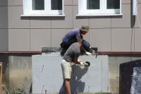 Внутри здания также продолжаются отделочные работы: покраска стен, укладка плитки в ванных комнатах, установка датчиков и т.д.