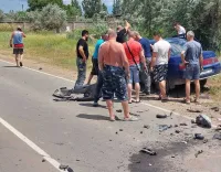 Столкнулись автомобили Volkswagen и ВАЗ. Водителя ВАЗ зажало в машине. Первую помощь оказали свидетели аварии.