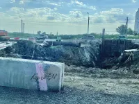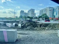 На месте дороги в районе Нижнего Солнечного в Керчи теперь огромный котлован. Проезжающие мимо и те пешеходы, кто не задохнулся от канализации, могут посмотреть ржавое хозяйство, что лежало под проезжей частью, - передает Керчь.ФМ.