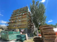 На Черноморской стоят строительные леса, проводят высотные работы.