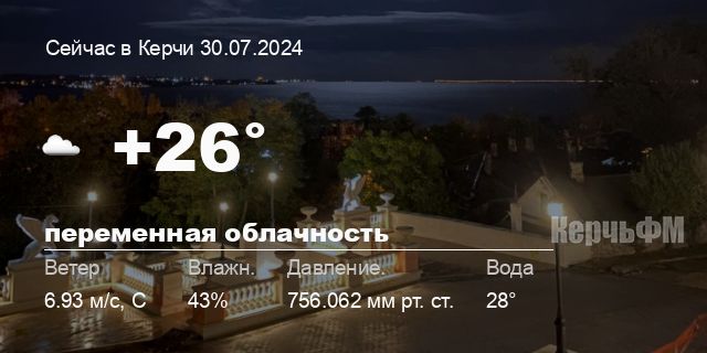 - Феодосия от +22.5° до +29.6°С, 🌞 ясно, море: 26°C