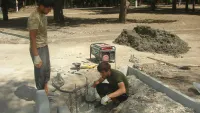 Полным ходом идут работы по обновлению тротуара по улице 12 апреля. Тротуар, по которому в день проходят десятки горожан, ведет к детской поликлинике №2 и больничному комплексу №2.