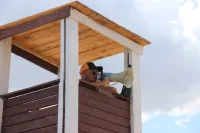 Предприниматель рассказал, как обстоят дела с пляжным сезоном в этом году. Показал новые объекты, которые появились на пляже, в том числе пандус для маломобильных граждан, установленный в начале лета в рамках благоустройства пляжной зоны. Территория чистая и ухоженная.