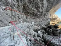 По ее данным, строители демонтировали более 25 метров поврежденного железобетонного покрытия тропы, части скалы над тропой, а также металлическое ограждение, которое уже пришло в негодность.