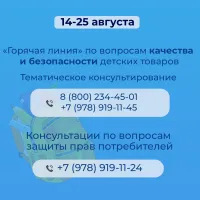 Горячая линия работает в будние дни с 14 по 25 августа. С понедельника по четверг звоните с 9:00 до 17:45, в пятницу с 9:00 до 16:30.