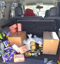 Женщина принесла тетради для школьников, ребята закупили продукты, средства личной гигиены и другие предметы первой необходимости. Волонтеры "Держим небо" оказали большую помощь самым необходимым.