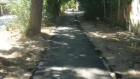 Теперь здесь уложен новый тротуар. Заезды во дворы оставили открытыми, т.е. тротуар ими периодически прерывается.