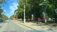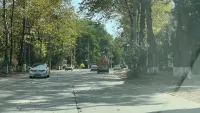 Так, сегодня они собирали её на улице Кирова. А вот на Горького вся проезжая часть усыпана листвой. Керчане давно не видели техники для уборки дорог.