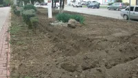 Администрация Керчи продолжает подготовку к организации капельного полива в сквере по ул. Кирова, 17.