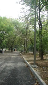 Заасфальтирована зона парковки, продолжается укладка тротуарной плитки на пешеходных дорожках. Установлены фонари освещения и камеры видеонаблюдения.