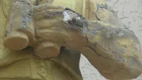 Скульптура матроса, оставшегося в одиночестве на подходе к Митридатской лестнице в Керчи, может окончательно лишиться своей руки.
