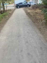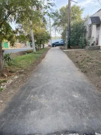 Вдоль обновленного тротуара насыпали слой земли. Местами - по обеим сторонам.