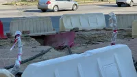 Разрытую яму с коммуникациями так и оставили открытой, и это все в центре города.