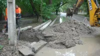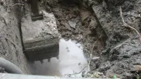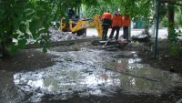Ремонтные работы осложнились тем, что над трубой, где произошел порыв, пролегает электрокабель.