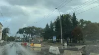 Напомним, в данном месте идут ремонтно-восстановительные работы по замене теплотрассы. Перед работами установили предупреждающие дорожные знаки.