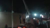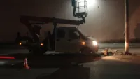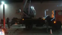 Водитель большегруза врезался в опору электроосвещения рядом с магазином "Амбар", в результате чего район был обесточен.