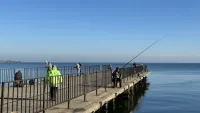 Также, к морю вышли и желающие выловить немного рыбки. С удочками можно было насчитать около 50 рыбаков, которые вылавливали бычок.