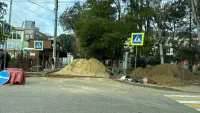 Кроме проезжей части, разрыли и тротуар. Пешеходам стоит быть внимательнее и смотреть под ноги.