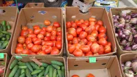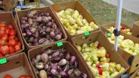 В Керчи у ЦДЮТ ( Дворец пионеров) проходит сельскохозяйственная ярмарка, передает КерчьФМ.