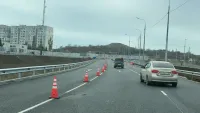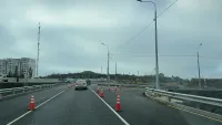 На сегодняшний день рабочие продолжают устанавливать ограждения вдоль дороги. Также на этом участке нанесли новую дорожную разметку и установили знаки.