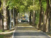 Асфальтировка идет в настоящий момент от остановки "Фабрика-Кухня" в сторону школы №17.