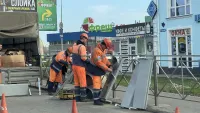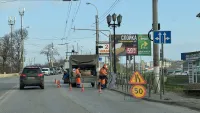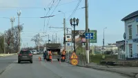 Одна полоса дороги в сторону Войкова частично перекрыта. Перед работами установили предупреждающие дорожные знаки.