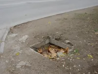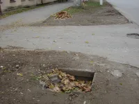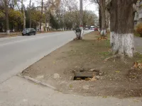Яма обозначилась после того, как убрали опавшую осеннюю листву.