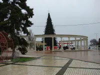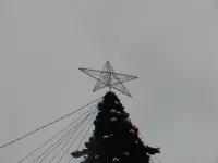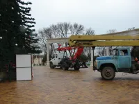 В Керчи над центральной елкой города появились первые электрогирлянды будущего шатра, передает КерчьФМ.