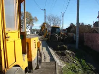 Основу будущего бордюрного тротуара готовили больше 3-х недель, укладывали бордюры, расчищали обочины, засыпали щебень.