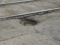 После очередных дождей выбоин стало больше, и они стали глубже.