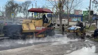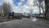 На участке трудятся рабочие и с помощью спецтехники «закатывают» дорогу в новый асфальт. Ям здесь больше не будет