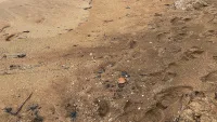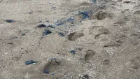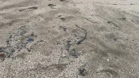 В Керчи 22 декабря на городском пляже на берег прибило мазут. Мелкими точками мазута покрыт весь берег. Также вынесло и бочки с канистрами, все испачканные.