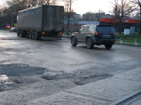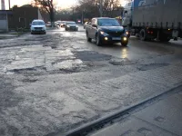 Автотранспорт едет медленно, но верно. Лужи пока не высохли...
