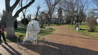 В Керчи на центральной площади не пережила новогодних праздников декорация «Мишка на льдине». Со слов рабочих, кто-то его завалил и украл с него шарф. Специалисты поставили его обратно и привязали к дереву. Кроме этого, его оградили забором, - передает КерчьФМ