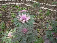 Особый восторг зимой вызывают цветы декоративной капусты. Есть и другие многолетние цветы. Особая гордость цветовода - прижившийся кипарис.