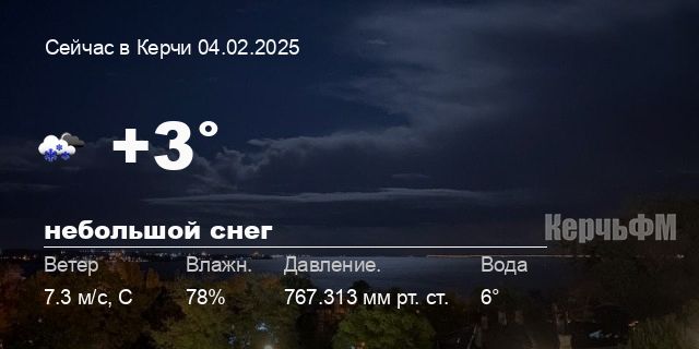 - Симферополь от -4.2° до -0.1°С, ⛅ небольшой снег