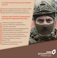С 1 февраля у ветеранов СВО появилась возможность подать заявление на получение медицинской реабилитации и санаторно-курортного лечения в крымских центрах «Мои Документы», передает КерчьФМ со ссылкой на пресс- службу МФЦ.