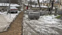 В Керчи во дворе на улице Краснофлотской, 14 начали благоустройство дворовой территории. Специалисты приступили к демонтажу плитки на тротуарах. Её сразу складывают на паллеты и готовят к вывозу, - передает КерчьФМ