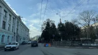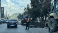 В связи с этим перекрыли частично одну полосу дороги в сторону улицы Свердлова. Работы идут на данный момент около здания администрации города.