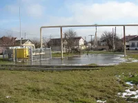 На соседней улице Правды вода подмерзла, там грунтовая дорога.