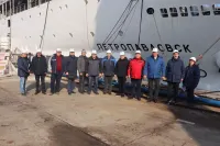 К этому времени судно спущено на воду, основное оборудование установлено, завершаются достроечные работы, начаты швартовные испытания. Судно планируется сдать в этом году.