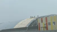 Напомним, общий вес металлоконструкций шатра - 200 тонн. В школе будет два ледовых катка: один для керлинга, другой для хоккея.
