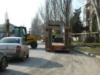 Погрузчик работал вчера в вечерний час пик и создал пробку из автомобилей, следующих по Гайдара на Мирошника. Как сказал потом один из рабочих: "Это была плохая затея - разгружаться в дневное время".