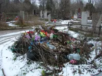 Сегодня на центральном кладбище Керчи небольшие и большие кучи мусора наблюдаются вдоль всех центральных аллей. Их припорошил снег, но не заметить их невозможно, передает КерчьФМ.