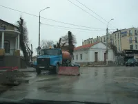 На прошлой неделе подрядчик выкопал глубокую траншею по Свердлова со стороны набережной.