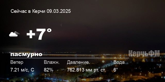 - Феодосия от +6.6° до +10.9°С, ☁️ пасмурно, море: 7°C