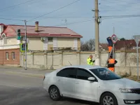 У детской больницы сегодня меняли старые дорожные знаки на новые, на флуоресцентном фоне, передает КерчьФМ.