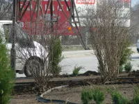 Зеленхозовцы высадили десятки саженцев деревьев и кустарников, таких как: кипарис, барбарис и можжевельник.